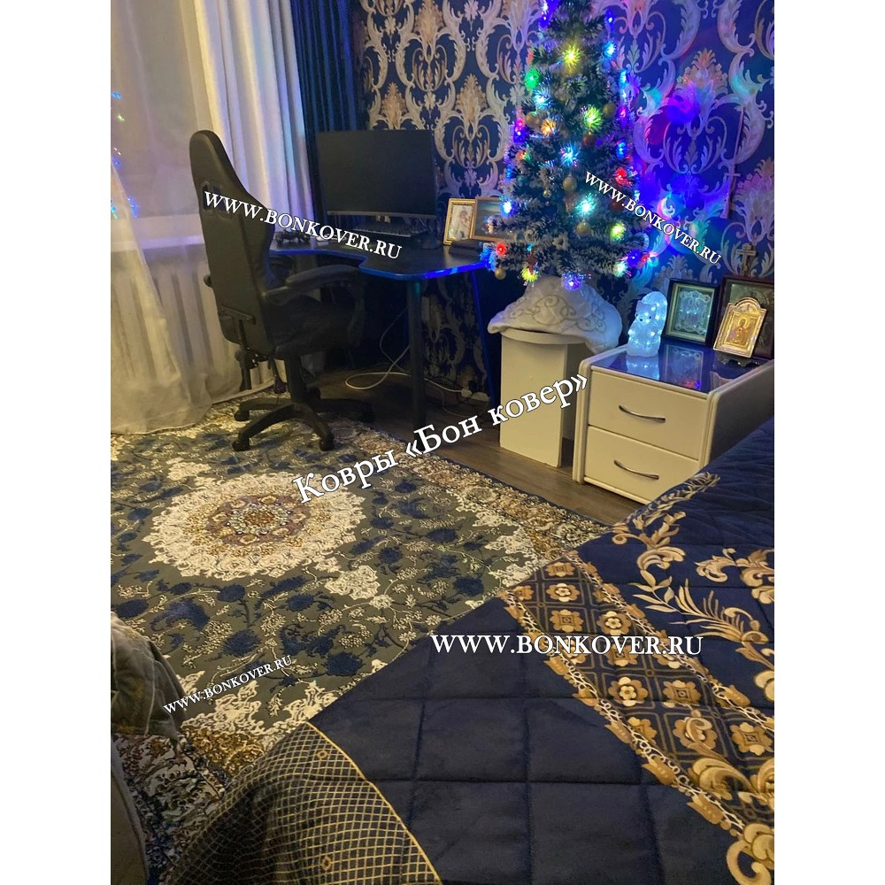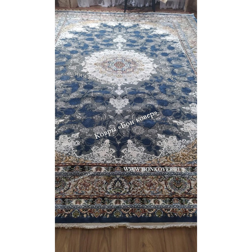 Шикарный Турецкий Ковер Для Медальон Дизайн 30573 Синий наполняет интерьер квартиры теплом и уютом, гармонично сочетает в себе изящество и красоту. Он соткан из износостойких материалов, комфортный и долговечный.