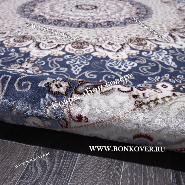 Шикарный Турецкий Ковер Медальон дизайн 87 Синий Овал наполняет интерьер помещения теплом и уютом, гармонично сочетает в себе изящество и стиль. Он соткан из современных материалов, прочный и долговечный.